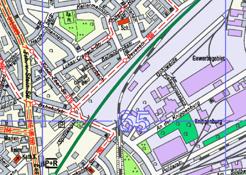 Der frühere Standort der Knippenburg ist namentlich angegeben.