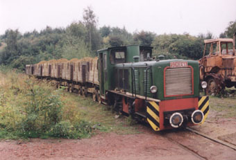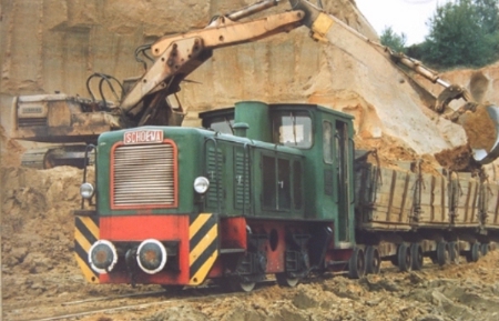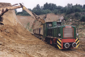 Die letzten Tage des Sandabbaus (Westfälische Sandgräberei GmbH) in Bottrop. Die Feldbahn hat eine Spurweite von 900 mm. In den 60 er Jahren des 20. Jahrhunderts erfolgte in der Grube am Donnerberg die Umstellung von der 600-mm auf die 900-mm-Feldbahn.