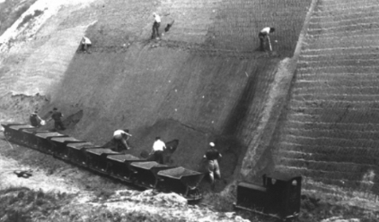 Der Sand wurde in dieser Grube noch bis 1960 mit der Hand abgestochen. Erst in diesem Jahr gelang es den Sand ganz mit einem Bagger abzubauen. Das Problem waren die verschiedenen Sandqualitäten, die nicht vermischt werden durften.
