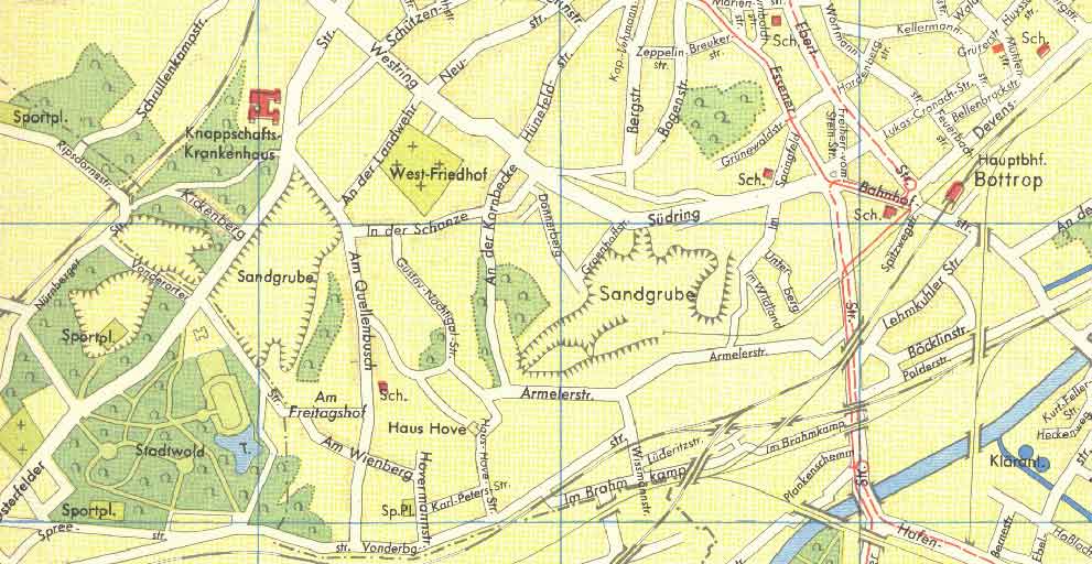 Das Grubengelände war der gesamte Bereich zwischen den Straßen Armeler Straße, Im Springfeld, Südring, In der Schanze bis zur gedachten durchgezogenen Linie der Straße An der Kornbecke zur Armeler Straße |